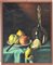 "Composizione con frutta e bottiglia" olio su tela (cm 50x40) Firmato in basso a destra. In cornice
