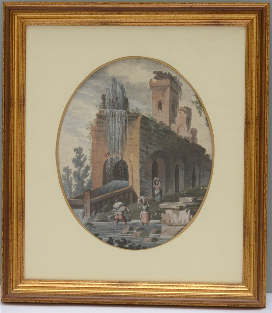 Lotto 1799 | Artista del XIX Secolo "Rovine con fiume" gouache su carta (cm 27x22) In cornic