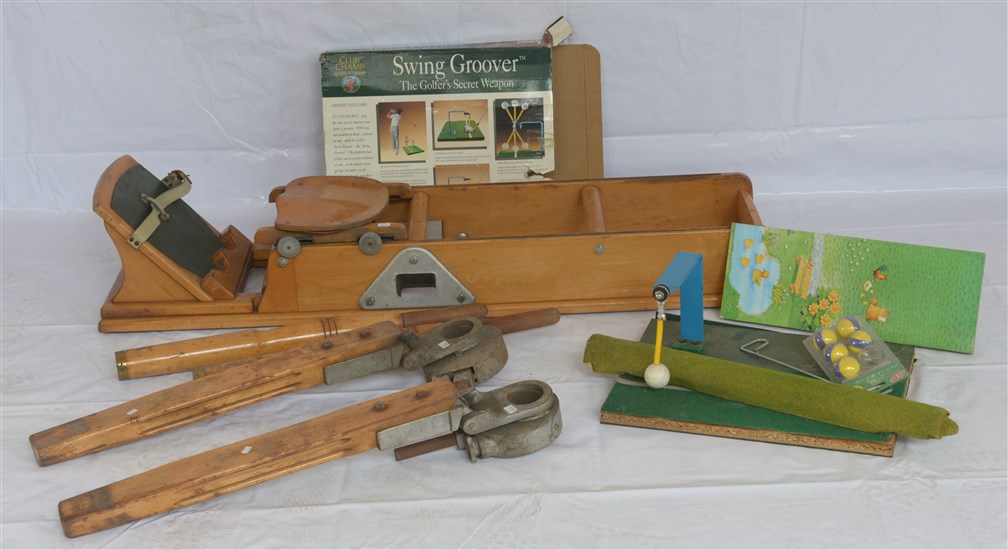 Lotto composto da un vogatore ed uno "Swing groover" (attrezzo per l'allenamento al golf indoor) (difetti)