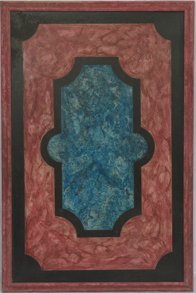Pannello in legno dipinto in policromia a finta scagliola (cm 89x135) (lievi difetti)