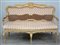 Antico divano di forma mossa in legno intagliato laccato e dorato (difetti e mancanze)
