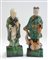 Due tegole in ceramica smaltata "a tre colori" raffiguranti dignitario e divinità (h. max. cm 34) (restauri) Cina, sec. XX