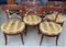 Gruppo di quattro sedie in legno laccato rosso e oro, schienale curvo decorato