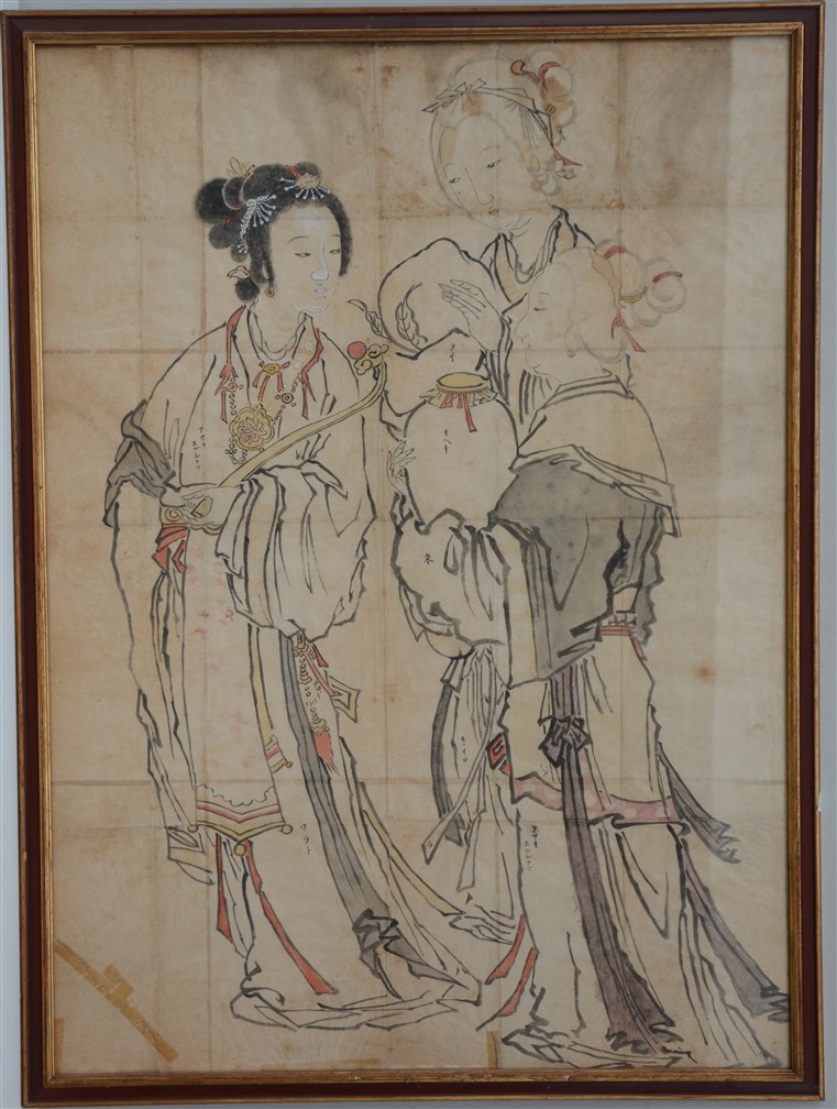 Dipinto ad inchiostro e colore su carta raffigurante immortale divinità femmini
