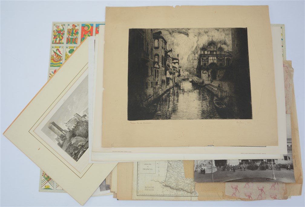 Cartella contenente numerose incisioni e stampe di diverso autore, soggetto ed epoca (difetti)