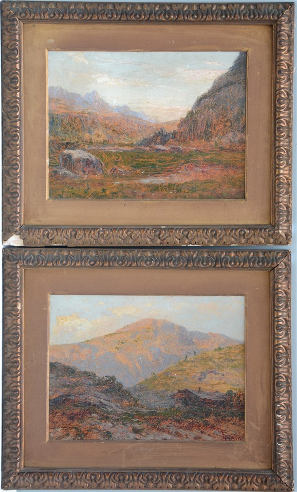 E. Plara "Paesaggi di montagna" due dipinti ad olio su cartone, uno dei due firm