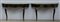 Coppia di tavoli da parete di forma mossa in legno ebanizzato e filettato in ot