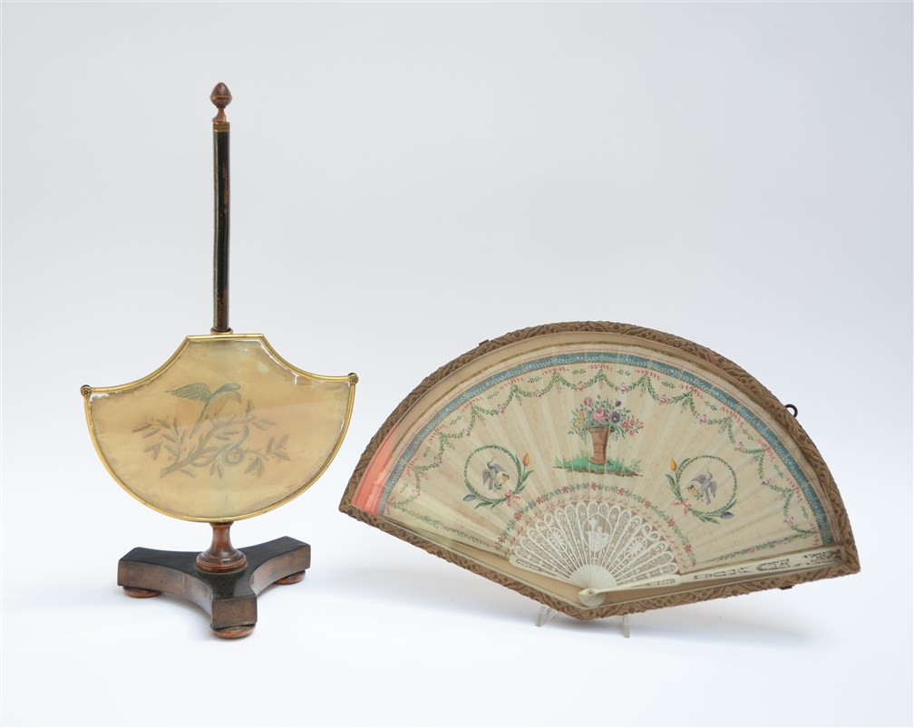 Lotto composto da una ventola ed un ventaglio del secolo XIX con stecche in avo