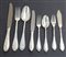 Parte di servizio di posate in argento composto da : ventitre coltelli, ventiquattro forchette e dodici cucchiai grandi, undici coltelli, dodici forchette e undici cucchiai, dodici coltelli e dodici forchette da dolce (gr 4500 senza coltelli) (difetti)