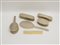 Servizio da toilette in argento composto da specchio a mano, pettine e quattro spazzole (difetti)