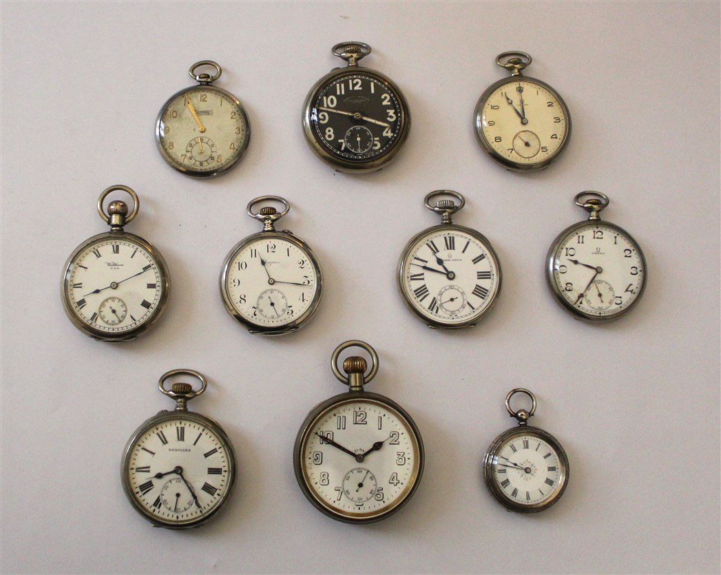 OMEGA, EBERHARD, LONGINES E ALTRI Lotto composto da dieci orologi da tasca in a