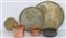 Lotto composto da tre piatti piani, due cache pot ed una casseruola in rame altri metalli (difetti)