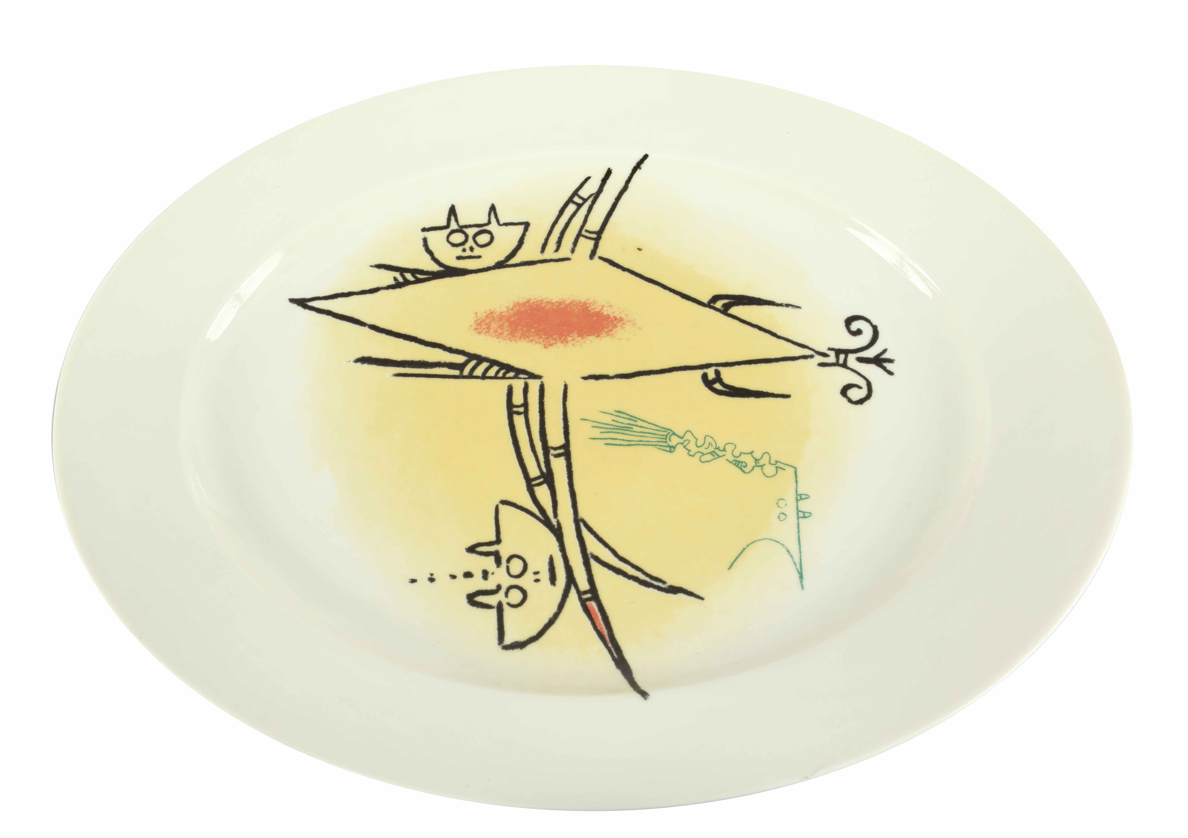 WIFREDO LAM Piatto in ceramica serigrafato P. A. cm 45 x 33 firmato Lam sul...