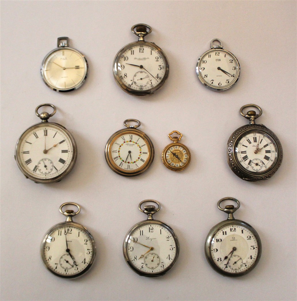 OMEGA, LONGINES, AVIA E ALTRI Lotto composto da dieci orologi da tasca in argen