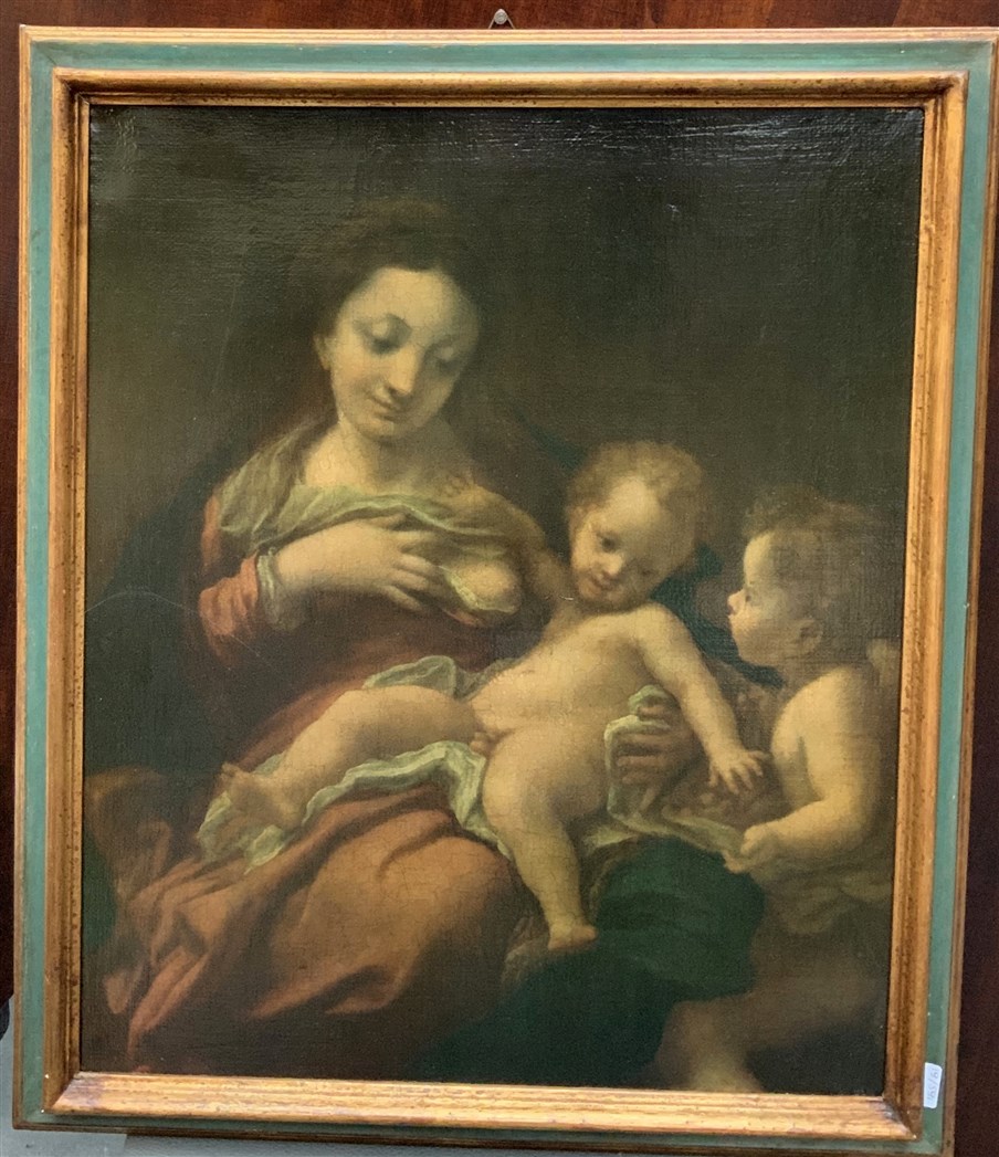 Ignoto, da Correggio "Madonna del latte" antico dipinto ad olio su tela (cm 51x42) in cornice (difetti e restauri)