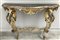 Antica console in legno dorato a quattro gambe con intagli rocaille, piano lacc
