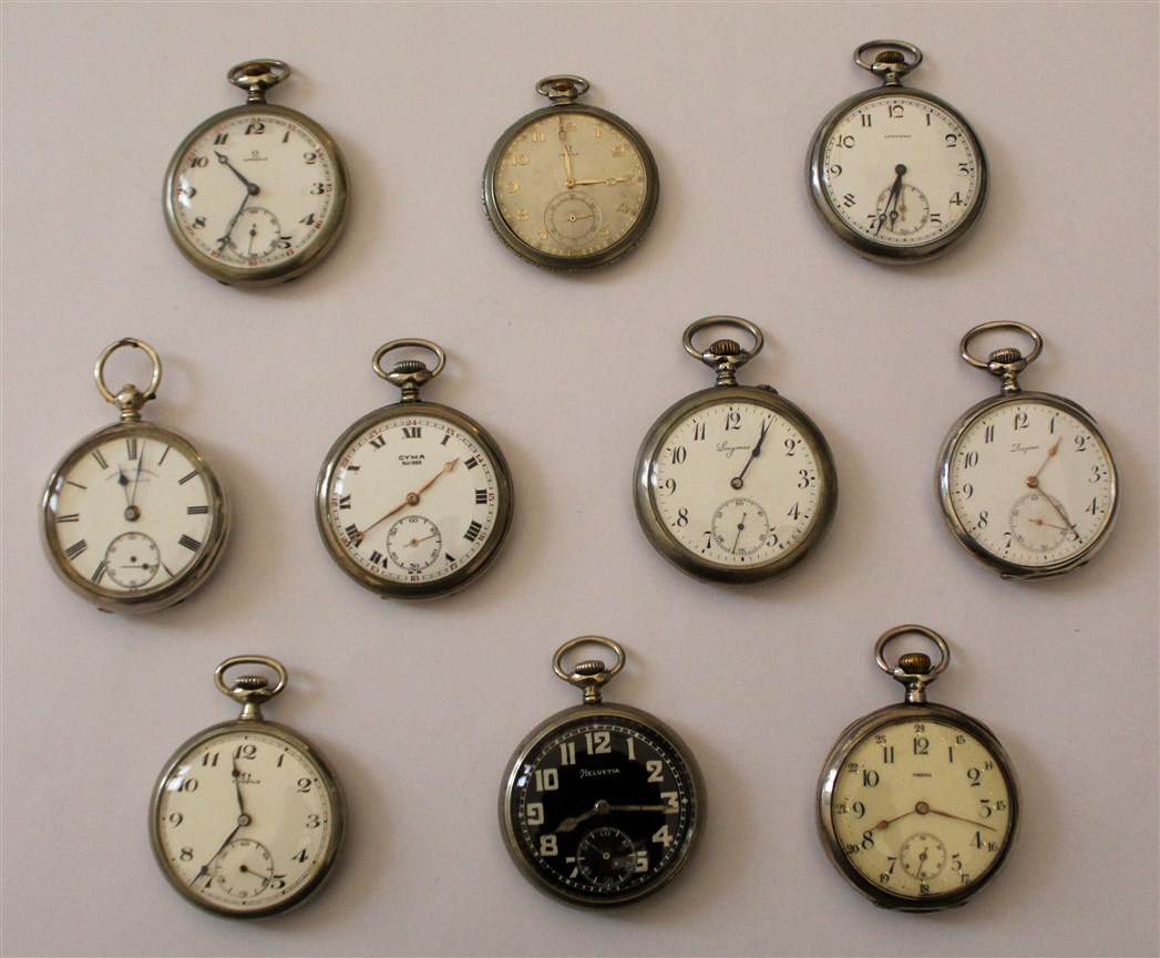 OMEGA, LONGINESE E ALTRI Lotto composto da dieci orologi da tasca in argento e