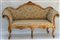 Divano a orecchioni in legno dorato con schienale sagomato e cimasa scolpita a