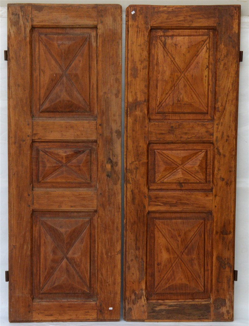 Coppia di ante pannellate in legno di frutto, secolo XVIII (difetti)