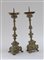 Coppia di portaceri in metallo argentato e sbalzato a volute e foglie. Secolo X