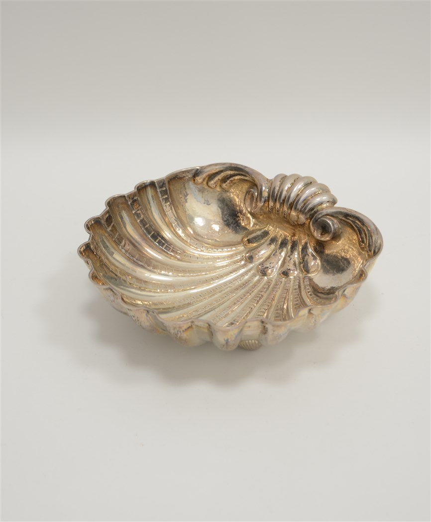 Centrotavola in argento a forma di valva di conchiglia. Argentiere Missialia, titolo 800 (cm 20x7) (g 380 ca.) (lievi difetti)
