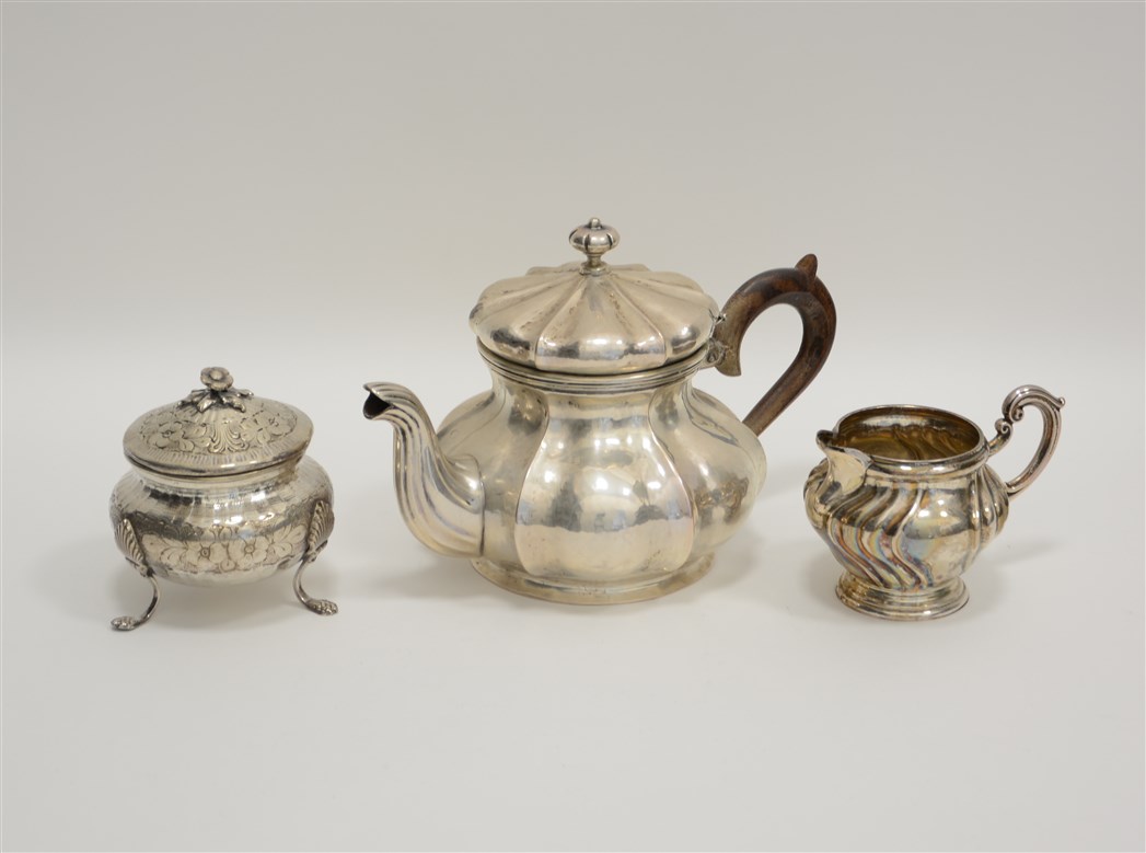 Lotto composto da un teiera, una zuccheriera ed una lattiera in argento (g lordi 920 ca.) (difetti)