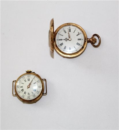 Lotto composto da due orologi da donna in oro 18K, di dievrese misure, forme e epoche