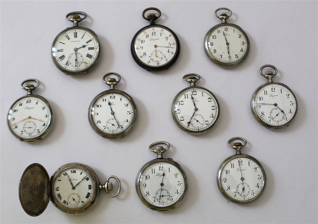 LONGINES, OMEGA E ALTRI Lotto composto da dieci orologi da tasca in argento e m