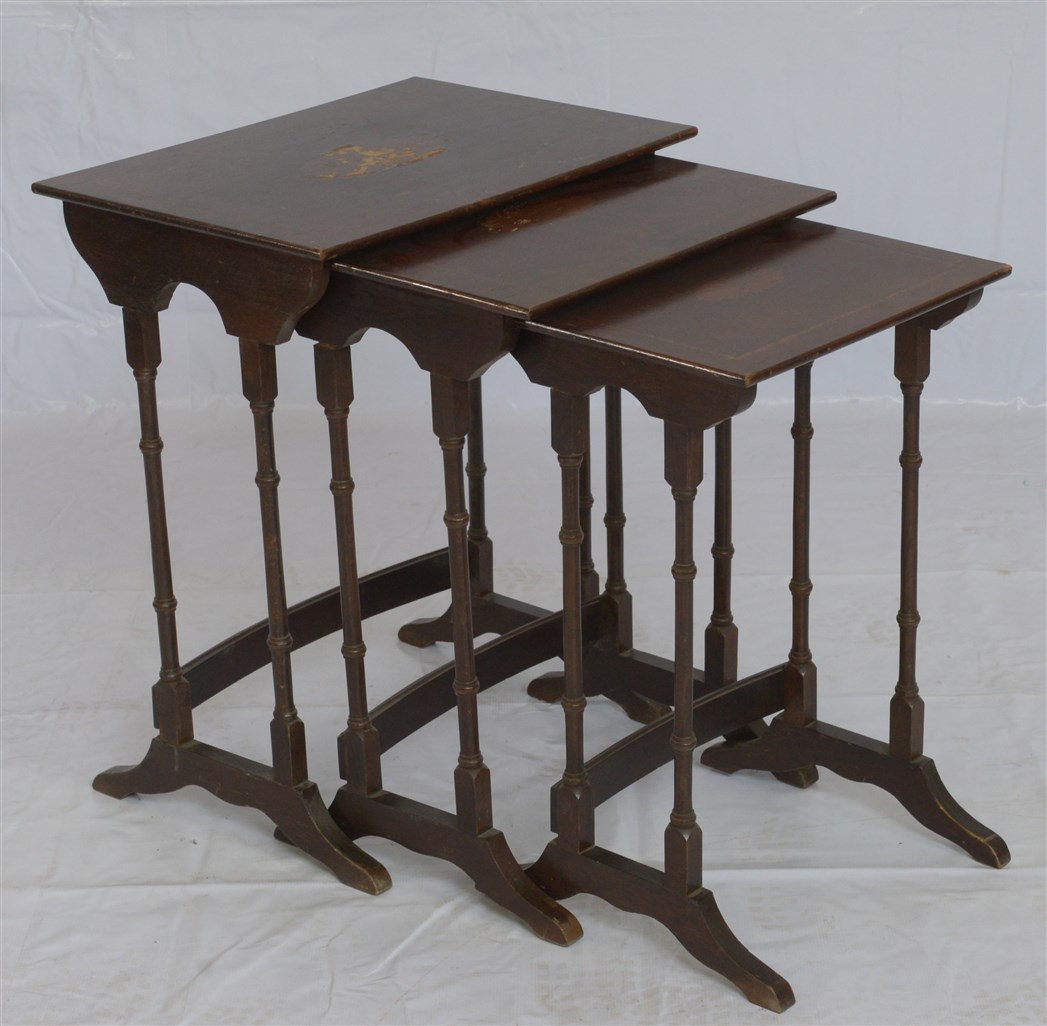 Tre tavolini a nido con sostegni in finto bamboo (difetti e mancanze)