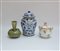 Lotto composto da una biscottiera, una potiche in porcellana, e un vasetto a bulbo in ceramica verde (h max cm 26) (lievi difetti)