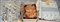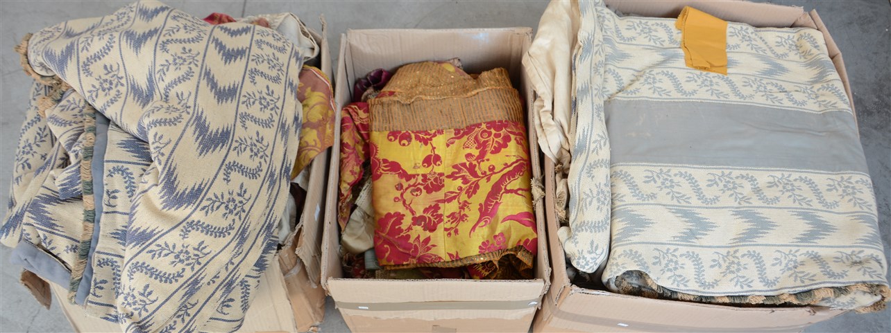 Lotto di tre cartoni contenenti numerose stoffe di varie fogge e dimensioni