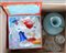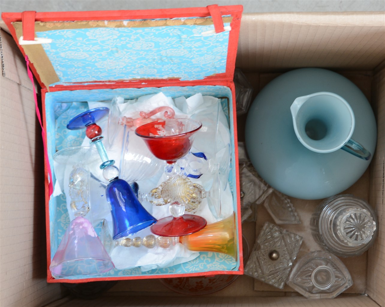 Cartone contenente numerosi oggetti in vetro soffiato, molato e cristallo per u