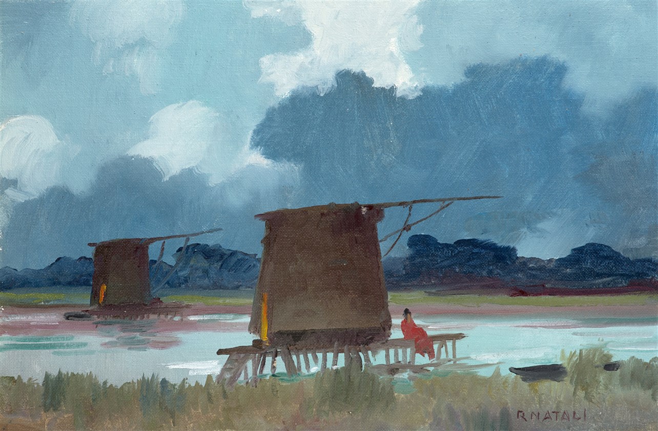 Renato Natali "Calambrone" olio su cartone telato (cm 19x30) Firmato in basso a