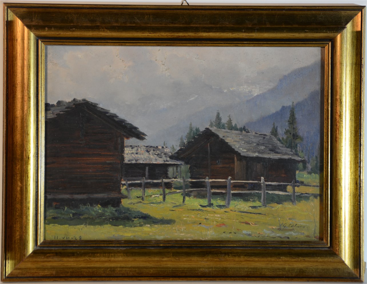 Giovanni Colmo "Baite" olio su cartone (cm 26x38) firmato in basso a destra e da