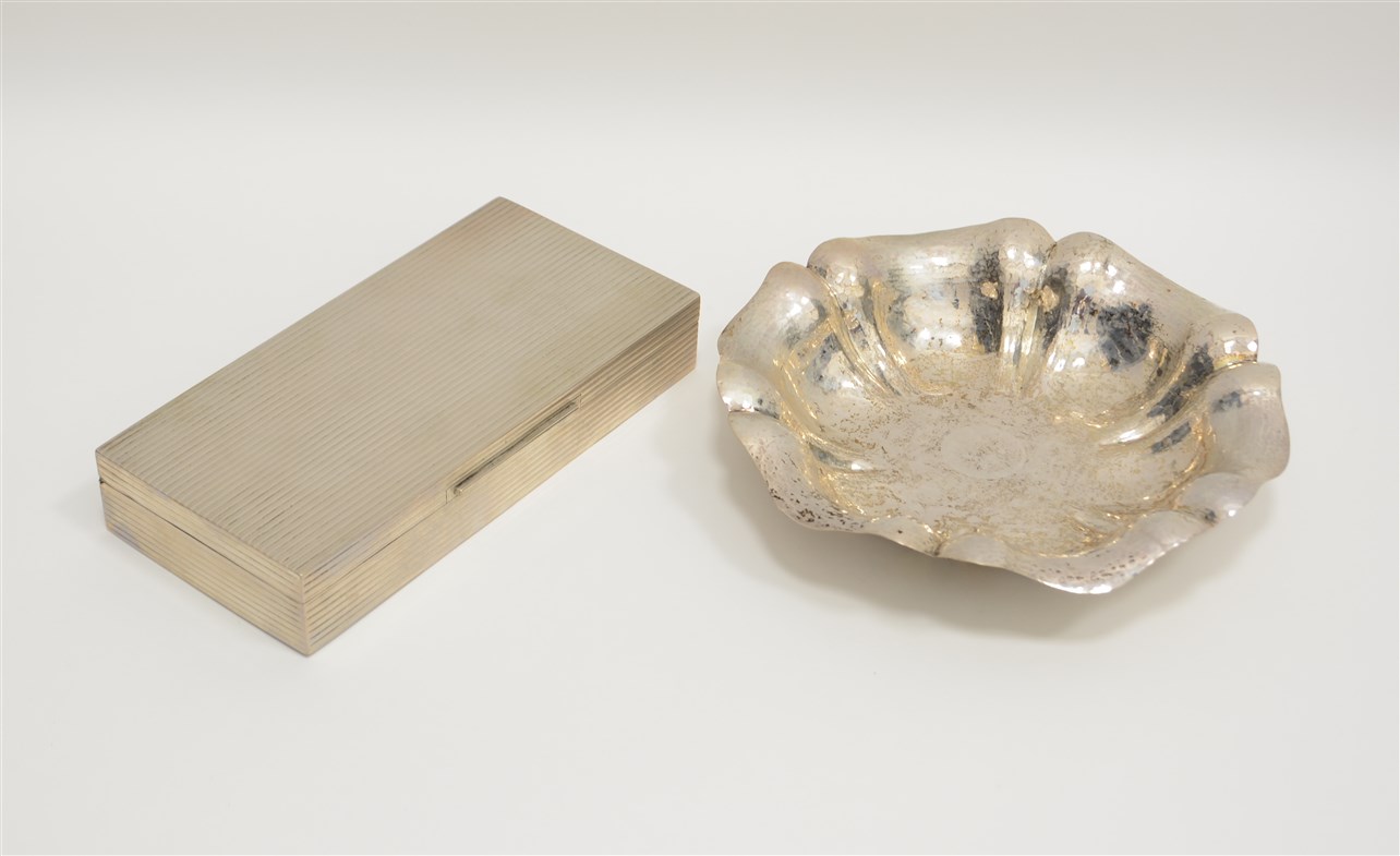 Lotto composto da una scatola portasigarette ed un'alzatina in argento (g 650 c