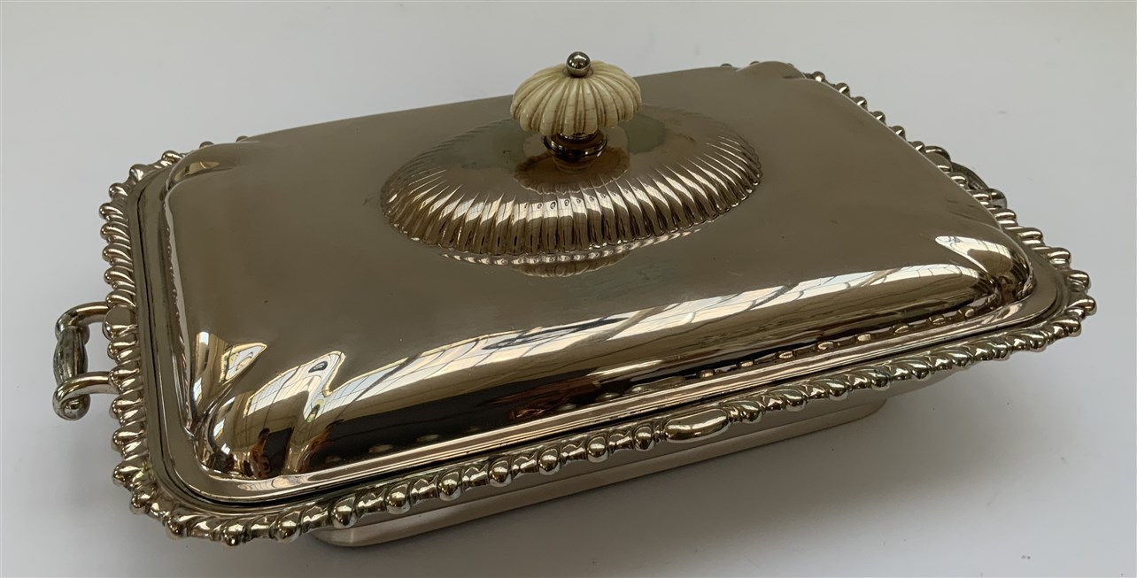 Legumeria in metallo argentato con bordure decorate a motivi concatenati