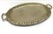 Vassoio biansato in metallo argentato di forma ovale con bordure decorate a motivi stilizzati
