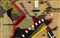 ENRICO BAJ Lego 1963 mattoncini lego su tessuto su tela cm 38 x 61 firmato in basso a sinistra certificato d'autentica Telemarket - Brescia etichetta Galleria Sianesi - Milano publicato sul Catalogo Generale Bolaffi a cura di Enrico Crispolti con il n°1085