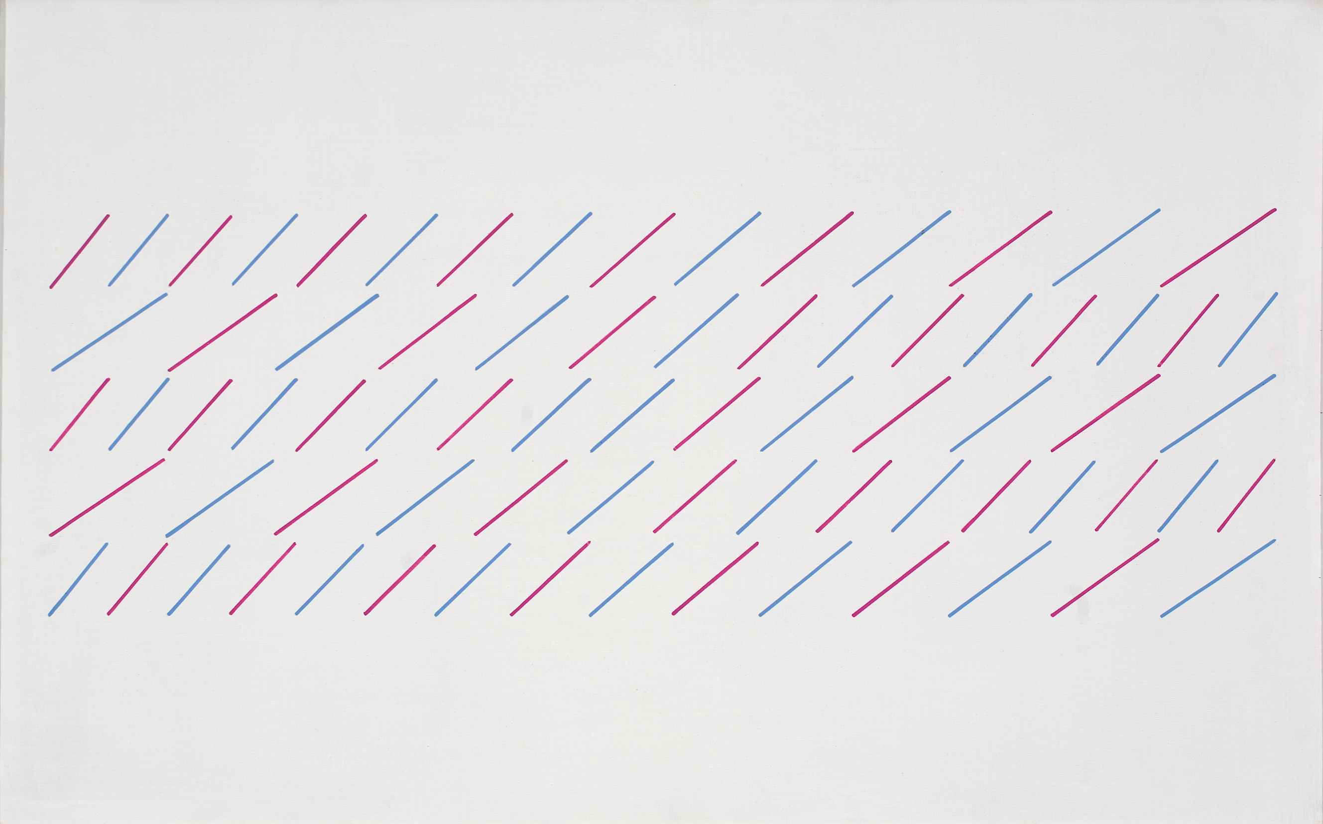 MARIO NIGRO Opposti 1972 tempera su tela cm 63 x 100 firmato, datato e titolato sul retro pubblicato sul Catalogo Ragionato a cura di Germano Celant, edito da Skira a pag 403 immagine n° 447 provenienza: Studio Mirabello - Milano Galleria Peccolo - Livorno Anfiteatro Arte - Padova