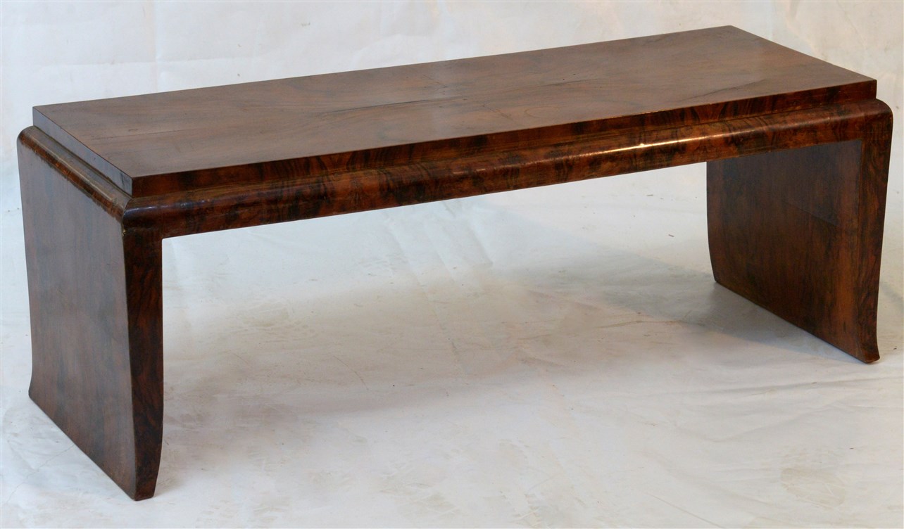 Panchetta Novecento in legno impiallacciato in radica di noce. Italia, anni '20/'30. (cm 100x40x34) (lievi difetti)