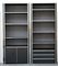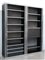 Gruppo di quattro librerie rivestite in laminato nero e bordate in metallo crom