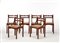 Sei sedie con struttura in legno massello e multistrato, sedile rivestito in te