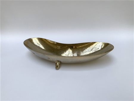 Vassoio-centrotavola a forma di fagiolo in metallo argentato. Italia. (cm 59x9,5x23) (lievi difetti)