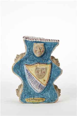 Procida Ceramiche Vaso rustico in ceramica con maschere e stemmi a rilievo smalt