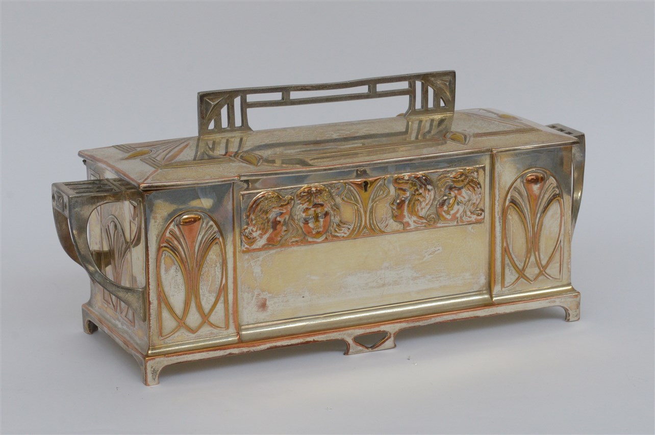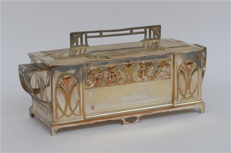 W.M.F. Scatola art nouveau in ottone argentato decorata a rilievo con motivi se