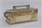 Scatola art déco in ottone argentato decorata a rilievo con motivi secessionisti. Germania, 1900ca. Marchio della manifattura a incussine sotto la base. (lievi difetti)