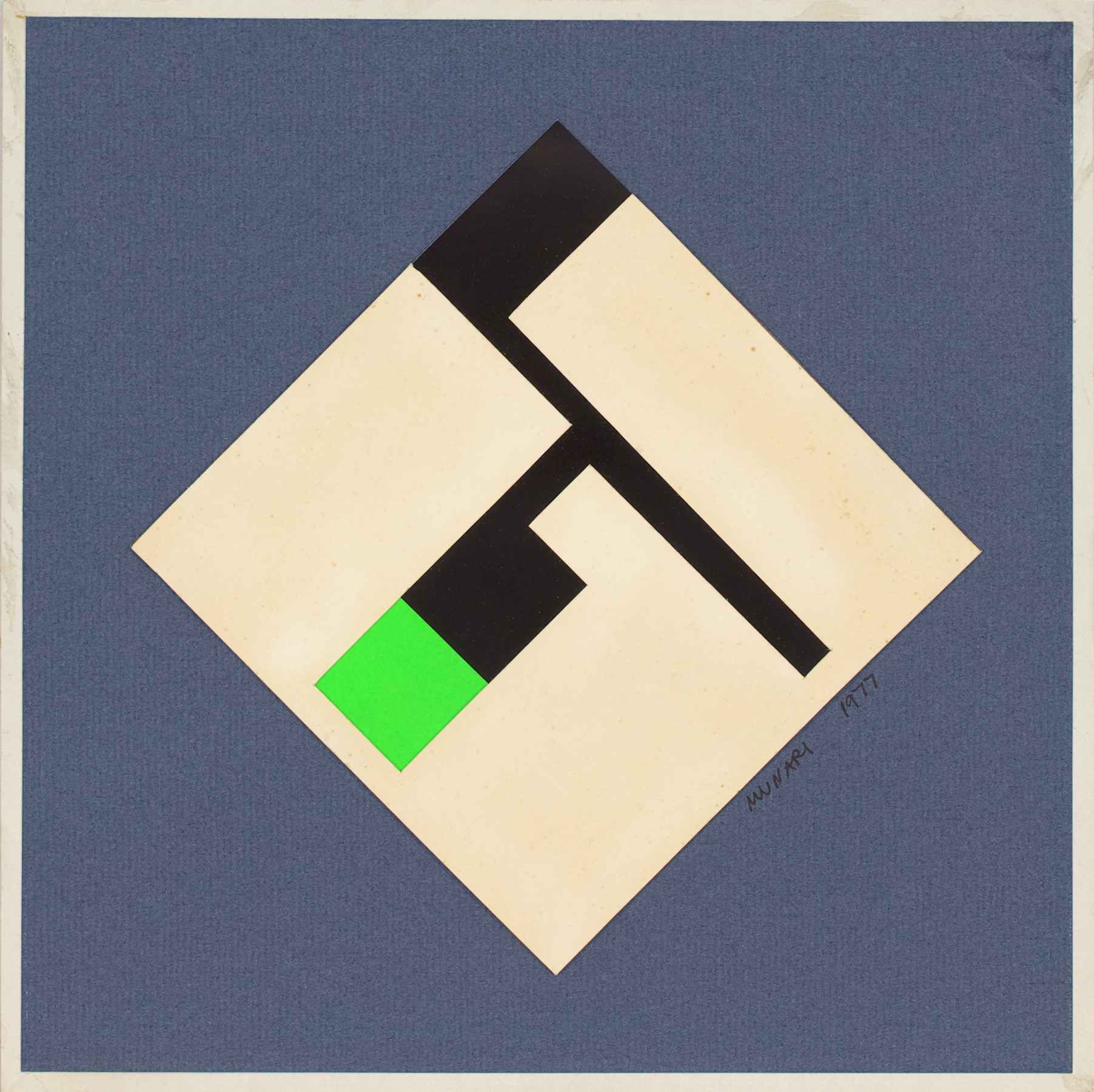 BRUNO MUNARI Positivo, negativo 1977 collage su cartoncino cm 20 x 20 firmato e datato in basso a destra firmato e dedicato sul retro provenienza: eredi Risari (BG)