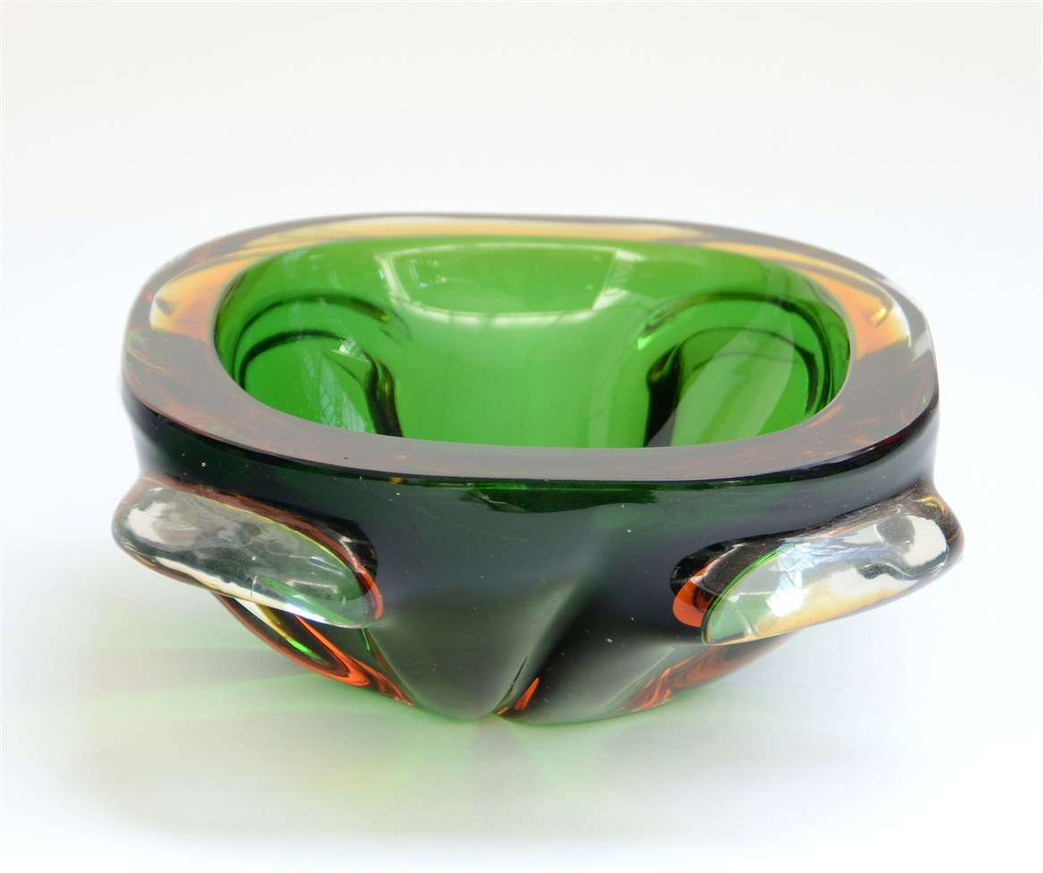 Manifattura di Murano Ciotola in vetro sommero incolore verde e rosso. Epoca re