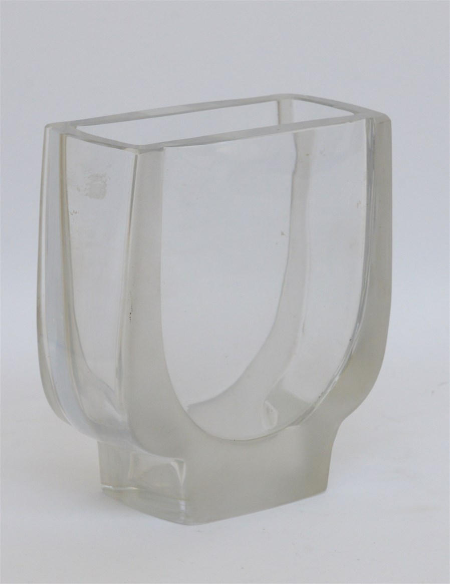 Vaso in cristallo pesante soffiato in stampo, molato e acidato sulla superficie esterna. Nancy, PM20. Firmato alla base "Daum Nancy France". (h cm 21,5) (lievi difetti)