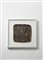 Tile in glazed stoneware in brown, green, ocher shades and vertical engravings graffiti. Italy, 1950s. (23x24cm). In frame. (slight defects)
